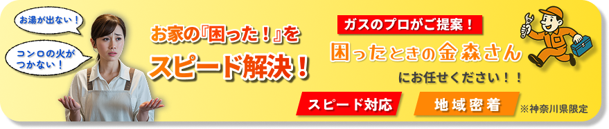 神奈川県限定 ガス給湯器・ガスコンロお取替え専用ページ「困ったときの金森さん」はこちら