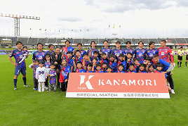 元日本代表選手の播戸竜二さんと加地亮さんによるサッカー教室「金森藤平商事Presentsカターレ富山サッカー教室」を開催しました。また同日、FC岐阜戦を当社冠試合のスペシャルマッチとして行ないました。