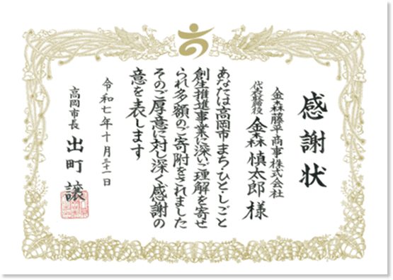 2011年3月11日に発生しました、三陸沖の太平洋を震源とする地震に対しまして、被災者の方々の救済や被災地の復旧に役立てていただくために、釜石ふるさと寄付金・日本赤十字社・東日本大震災義援金口などを通じまして義援金の寄付をさせていただきました。